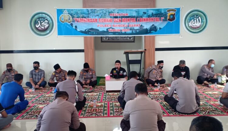 TerabasNews, Bangka Barat – Berbagai upaya dilakukan Polres Bangka Barat dalam rangka meningkatkan kualitas keimanan dan ketaqwaan anggota Polres Bangka Barat kepada Tuhan yang Maha Esa. Salah satunya dengan mengadakan kegiatan pembinaan rohani dan mental (Binrohtal). Kamis (27/05/2021).