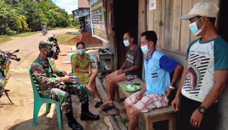 Dengan Berinteraksi Dengan Warga, Babinsa Teluk Runjai, Kodim 1203/Ktp Sampaikan Pentingnya Protokol Kesehatan