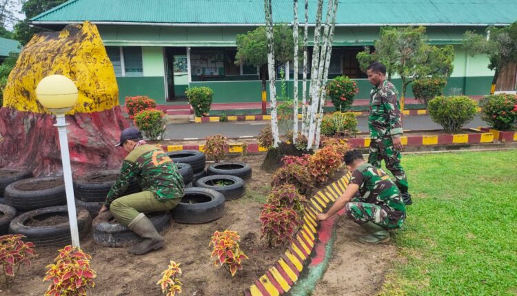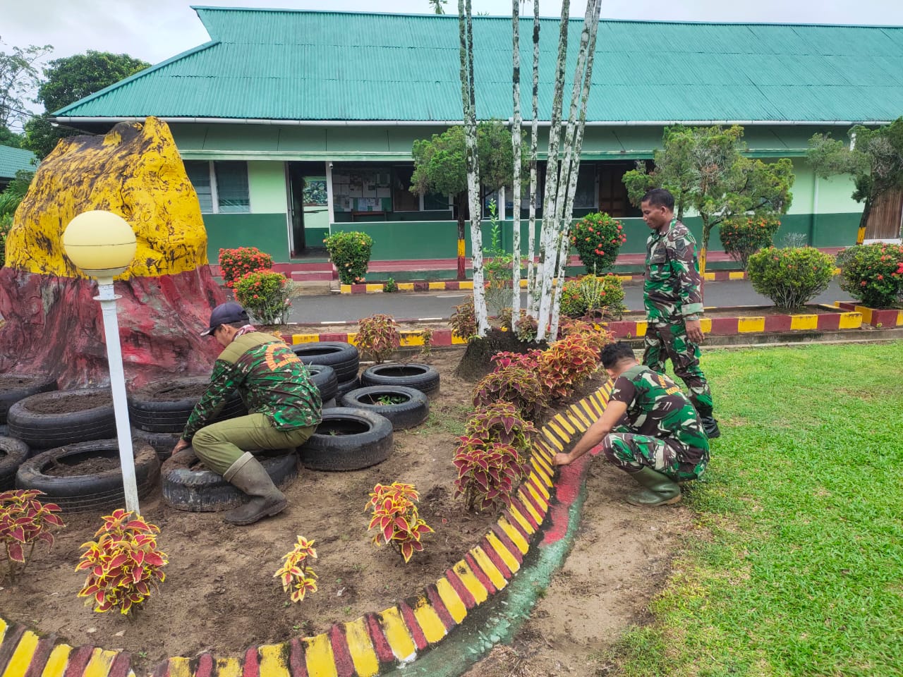 TerabasNews, Ketapang – Guna menciptakan lingkungan yang bersih dan indah, Anggota Kodim 1203/Ktp melaksanakan pembersihan dan pembenahan di sekitar kantor Kodim 1203/Ktp.
