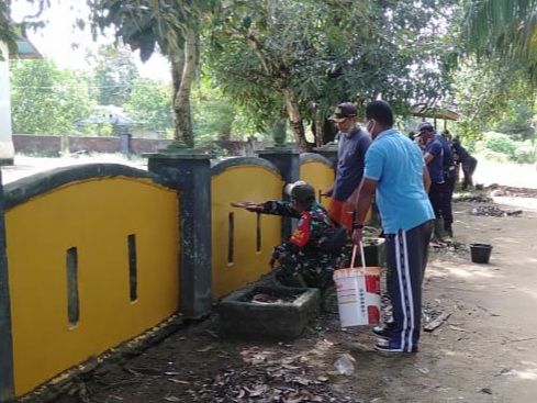 Disela pengecatan Babinsa Simpang Tiga Sembilangan Serda Agus Widodo mengatakan, melalui kegiatan gotong royong ini akan tercipta rasa kebersamaan, kekeluargaaan dan kerjasama antara aparat dan warganya.