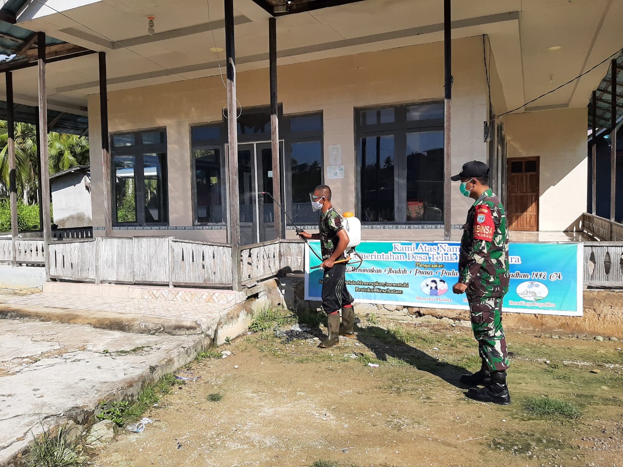 TerabasNews, Ketapang – Dalam rangka memaksimalkan fungsi Posko PPKM berbasis Mikro dalam penanggulangan Covid-19, Praka Andri, Babinsa Teluk Batang Utara, Koramil 1203-15/Tl. Batang, Bersama Ketua RT 01 Dusun Karya Mulia Bapak Bujang Musa melaksanakan penyemprotan disinfektan di rumah ibadah didesa binaanya, Jum’at (21/5/2021)