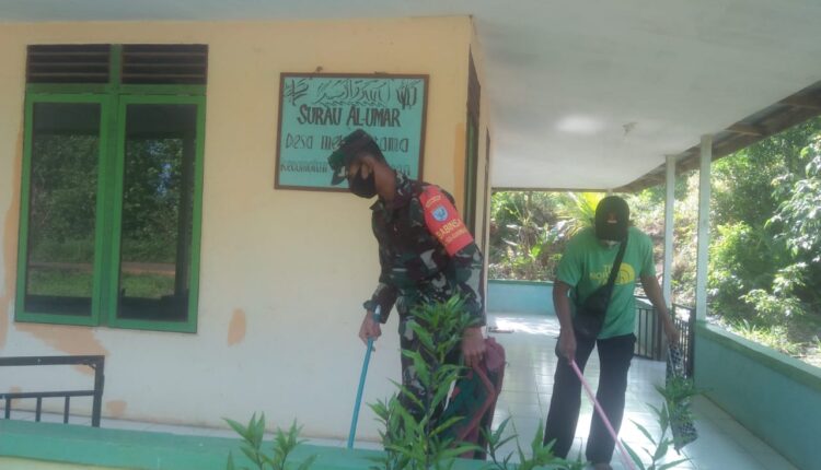 TerabasNews, Ketapang – Pratu Slamet, yang kesehariannya berdinas di Koramil 1203-03/Kdw, Kodim 1203/Ktp, Ditengah Kesibukan Kegiatan rutinya sehari-hari, menyempatkan diri membantu warga membersikan rumah ibadah (Mushola Al-Umar) yang berlokasi di Dusun Batu Bagendang, Desa mekar utama desa binaanya, Kec. Kendawangan, Kab. Ketapang.