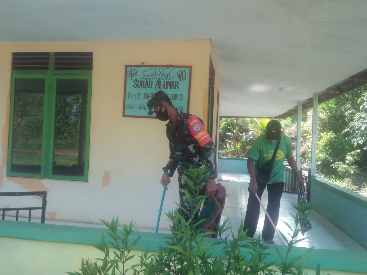 TerabasNews, Ketapang – Pratu Slamet, yang kesehariannya berdinas di Koramil 1203-03/Kdw, Kodim 1203/Ktp, Ditengah Kesibukan Kegiatan rutinya sehari-hari, menyempatkan diri membantu warga membersikan rumah ibadah (Mushola Al-Umar) yang berlokasi di Dusun Batu Bagendang, Desa mekar utama desa binaanya, Kec. Kendawangan, Kab. Ketapang.