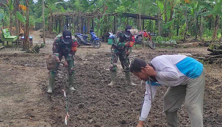 Semangati Petani Olah Lahan, Babinsa Kodim 1203/Ktp, Bantu Mencangkul