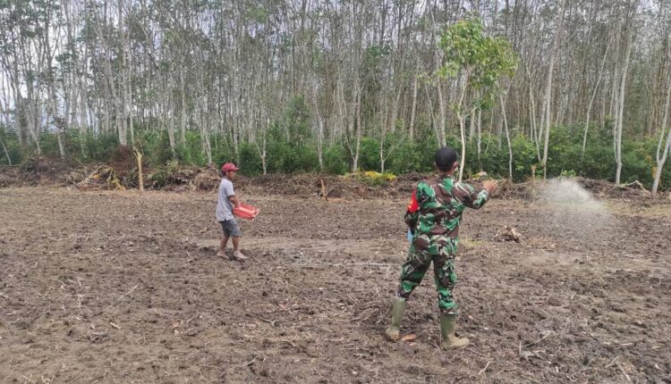 Babinsa Ratu Elok Kodim 1203/Ktp, Bantu Petani Tabur Pupuk