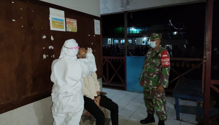 TerabasNews, Ketapang – Upaya pencegahan penyebaran virus corona terus digencarkan jajaran Kodim 1203/Ktp, salah satunya Koramil 1203-15/Teluk Batang yang rutin melaksanakan Tracing dan Swab Antigen kepada penumpang yang datang maupun akan berangkat di pelabuhan penyebrangan antar kabupaten di Kecamatan Teluk Batang Rabu (2/6/2021).