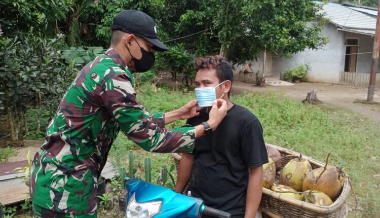TerabasNews, Ketapang – Koramil 1203-14/Jelai Hulu gencarkan sosialisasi dan edukasi kepada masyarakat tentang protokol kesehatan, hal ini sebagai upaya menekan penyebaran dan penularan virus covid-19 diwilayah binaan.