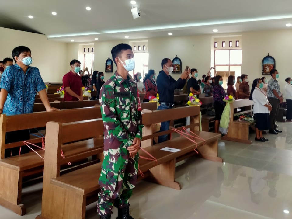 Tak hanya melaksankan ibadah Serda Vany Oktapianus juga juga mengajak warga untuk berpikir bijak mendukung upaya-upaya memutus mata rantai covid-19 yang sudah dilakukan oleh berbagai pihak, dengan disiplin menerapkan protokol kesehatan dimana saja dan kapan saja.