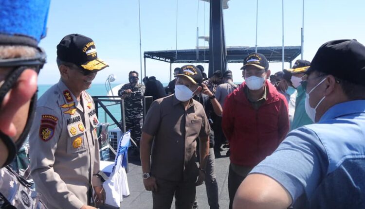 TerabasNews, Basel – Menggunakan Kapal Angkatan Laut Manau Ketua DPRD bersama Gubernur dan jajaran Forum Koordinasi Pimpinan Daerah (Forkopimda) Kep. Bangka Belitung (Babel) berlabuh di Kep. Pongok guna menyapa dan menyerahkan bantuan kepada warga setempat.