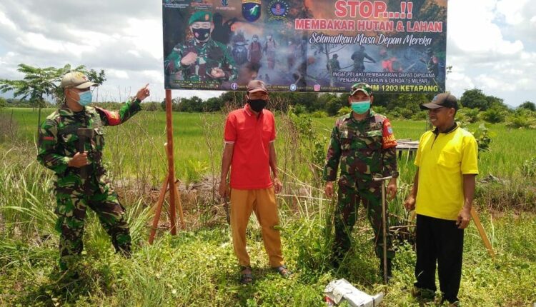 Maksimalkan Upaya Cegah Karhutla, Koramil Simpang Hilir, Jajaran Kodim 1203/Ktp, Pasang Spanduk Himbauan