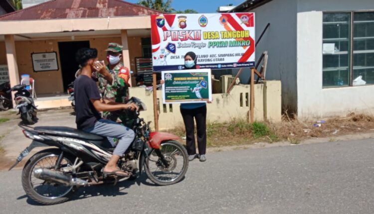 TerabasNews, Kayong Utara – Demi meningkatkan kedisiplinan warga dalam mematuhi Protokol kesehatan didesa binaannya, Hasanudin Karim, Babinsa Nipah Kuning, Koramil 1203-11/Sph, Kodim 1203/Ktp Bersama Satgas PPKM Mikro tingkat Desa melaksanakan kegiatan penegakan disiplin protokol kesehatan di Desa Nipah Kuning, Kec. Simpang Hilir, Kab. Kayong Utara.