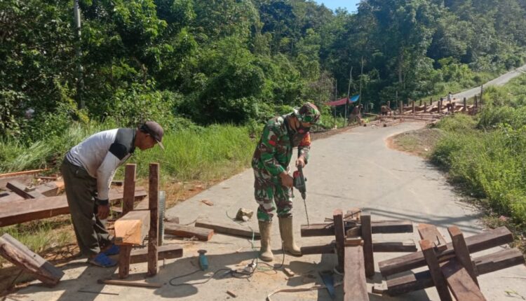 TerabasNews, Ketapang – Babinsa Koramil 1203-10/Sandai, Jajaran Kodim 1203/Ktp bersama masyarakat melaksanakan gotong royong perbaikan jembatan. Senin (7/6/2021)