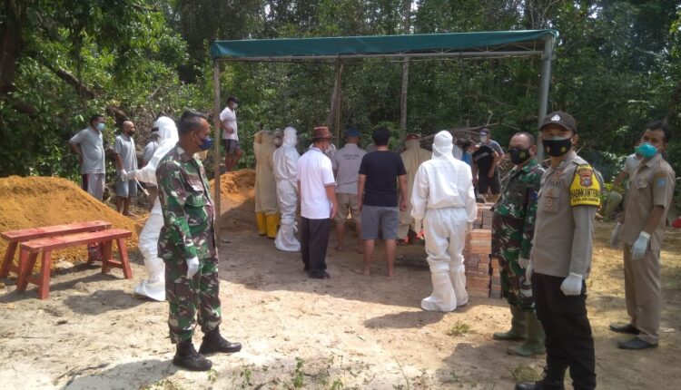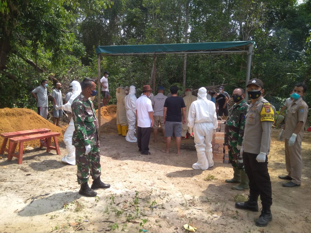 Sertu Feri Arianto mengatakan, Babinsa dan Bhabinkamtibmas Desa Air Gantang beserta tim gugus kecamatan Parit Tiga melakukan prosesi pemakaman pasien COVID-19 yang meninggal dunia.