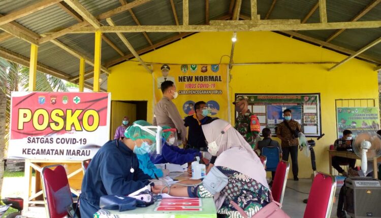 Dukung Pelaksanaan Vaksinasi Babinsa Koramil Marau Dampingi Tenaga Medis