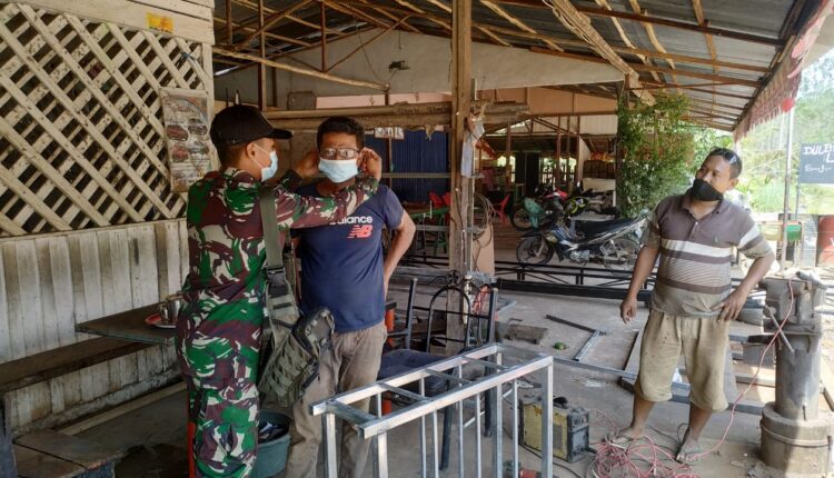 Ingatkan Warga Agar Benar-Benar Terapkan Prokes, Ini Yang dilakukan Babinsa Pasir Mayang
