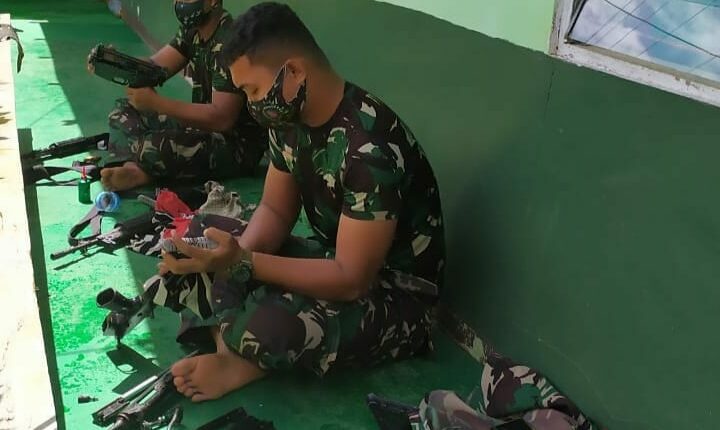 TerabasNews, Ketapang – Senjata merupakan istri pertama bagi seorang prajurit, oleh karenanya setiap prajurit di tuntut untuk merawatnya dengan baik. Sehingga apabila setiap saat akan digunakan senjata sudah dalam keadaan bersih dan siap.