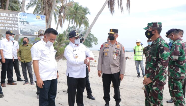 Nah, hari Rabu (9/6/2021) Gubernur Erzaldi bersama Kapolda Babel Irjen Pol. Anang Syarif Hidayat langsung meletakkan batu pertama pembangunan pengamanan abrasi pantai, di Dusun Pesaren, Desa Bintet, Kabupaten Bangka.