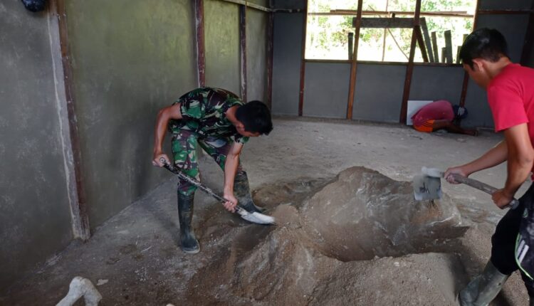 Dikatakan Danramil 1203-02/Skd, Kapten Inf Kadarudin dengan memanfaatkan waktu luang Babinsa Koramil Sukadana penuh semangat melaksanakan pengecoran ruang dan pemasangan Keramik Kantornya.