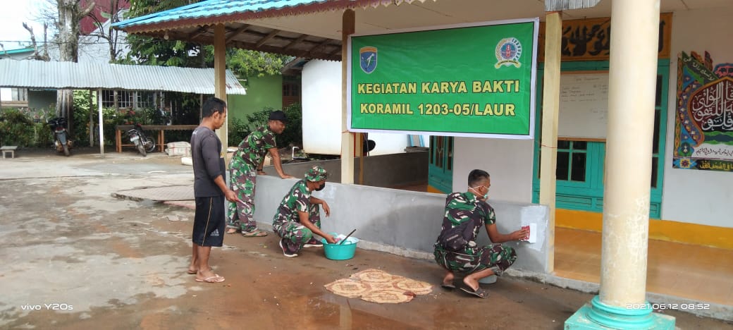 Ditempat terpisah Pj. Danramil 1203-05/Sungai Laur Peltu Kondori mengatakan, kegiatan ini merupakan bentuk kepedulian TNI dan wujud nyata pengabdian untuk rakyat, dengan memiliki tempat ibadah yang indah dan bersih tentunya akan membuat Hikmat dalam beribadah,” jelasnya.