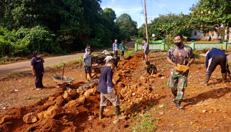 TerabasNews, Ketapang – Sebagai bentuk implementasi pembinaan teritorial di wilayah binaannya, Babinsa Koramil 1203-03/Kdw, Praka Jaya Sumardani membantu pondok pesantren Nurul Hidayah Azain yang sedang melaksankan pembangun pagar di Dusun Sungai Gantang Desa Mekar Utama, Kecamatan Kendawangan, Kabupaten Ketapang.