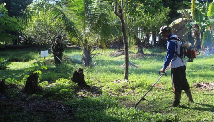 TerabasNews, Ketapang – Dalam rangka menciptakan suasana pangkalan yang indah dan nyaman, yang tentunya akan memberikan kesan tersendiri bagi tamu atau warga yang berkunjung, Untuk Anggota Kodim 1203/Ktp, melaksanakan pembersihan sekitar Makodim, Kamis (17/6/2021).