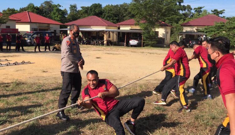 TerabasNews, Bangka Barat – Polres Bangka Barat memperingati Hut Bhayangkara Ke 75 Polres Bangka Barat menggelar kegiatan lomba tradisional, sejumlah peserta terlihat senang tatkala mengikuti lomba bakiak dan Tarik Tambang dalam rangka Hari Ulang Tahun Bhayangkara(HUT) ke-75 puluhan peserta dari personel Polres Bangka Barat dan jajaran Polsek Adu cepat berjalan di atas papan kayu dan tarik tambang itu pun tampak seru.Jum’at 25 Juni 2021