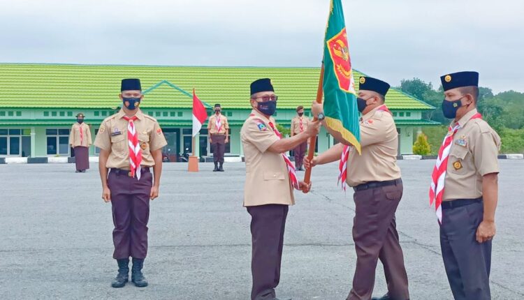 Melaksanakan Penyematan Tanda Jabatan, sambutan pimpinan Kwarcab Bangka Barat Penyerahan Bendera Saka Wira Kartika “Mayor Syafri Rahman”dilanjutkan Foto bersama