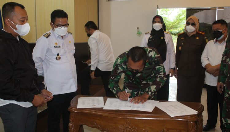 TerabasNews, Toboali. Penrem 045/Garuda Jaya – Danrem 045/Garuda Jaya Brigjen TNI M Jangkung Widyanto, S.I.P., M.Tr.(Han). bersama Bupati Bangka Selatan H. Riza Herdavid, ST., M.Trip. dan Dirkrimsus Polda Babel Kombes Pol Harryo Sugihartono memfasilitasi penyelesaian lanjutan permasalahan masyarakat Kecamatan Lepar Pongok dengan Perusahaan Sawit PT SNS.