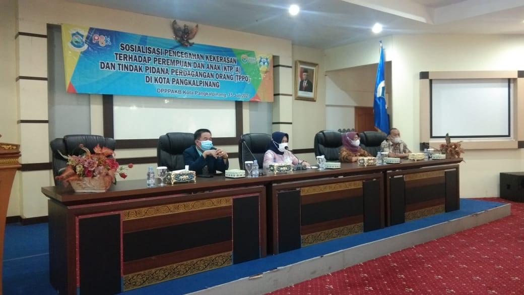 TerabasNews, PANGKALPINANG – Sekda Kota Pangkalpinang Radmida Dawam membuka kegiatan sosialisasi pencegahan Kekerasan Terhadap Perempuan dan Anak (KTP/A) dan Tindak Pidana Perdagangan Orang (TPPO) di Ruang OR Kantor Wali Kota Pangkalpinang, Kamis (15/7/2021).