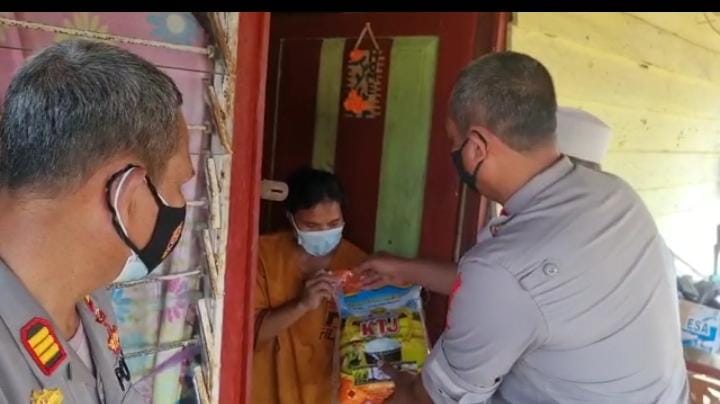 TerabasNews, Bangka Barat – Kapolres Bangka Barat AKBP Agus Siswanto SH.SIK.MH berkeliling memberikan sembako untuk warga terdampak Covid-19 kepada masyarakat di Kampung Teluk Rubiah kecamatan Mentok, Kabupaten Bangka Barat di dampingi Sat Binmas Polres Bangka Barat,