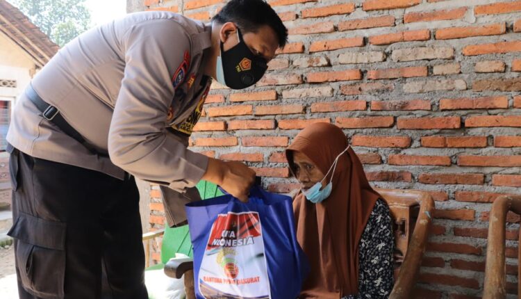 TerabasNews, Kudus – Polres Kudus dan Polsek jajaran melalui Bhabinkamtibmas melanjutkan pembagian paket Sembako bagi warga masyarakat terdampak program pembatasan kegiatan masyarakat (PPKM) Level 4, Jumat (23/7/2021) Siang.