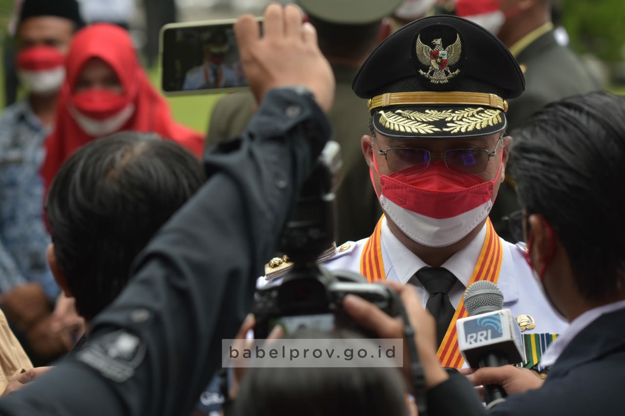 Pernyataan itu disampaikan Gubernur Kepulauan Bangka Belitung, Erzaldi Rosman usai memimpin Upacara Hari Ulang Tahun (HUT) Republik Indonesia ke-76 Tahun 2021 di Halaman Kantor Gubernur, Selasa (17/8/21).