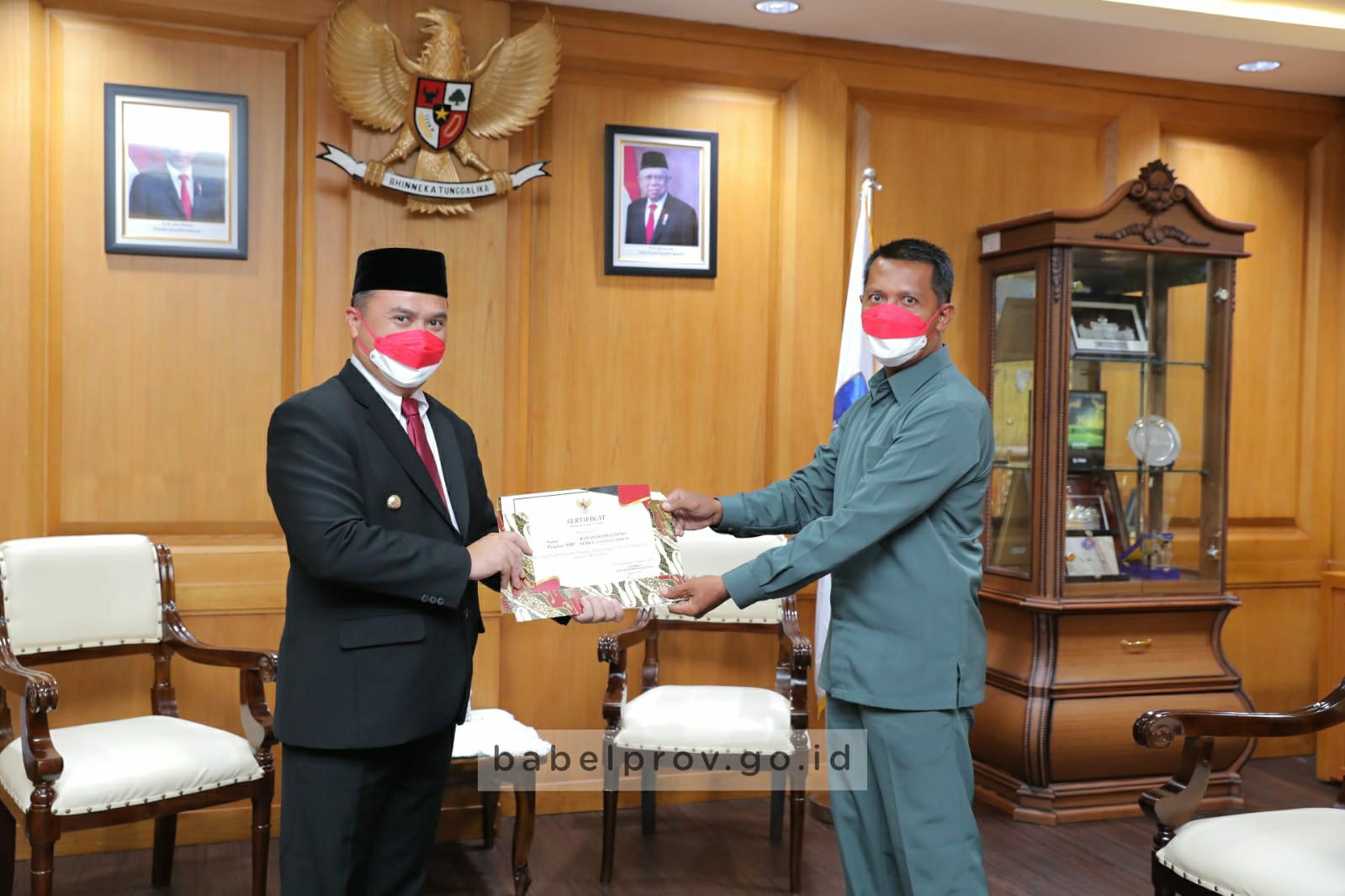Piagam penghargaan oleh Gubernur Erzaldi langsung diserahkan kepada para Pelatih dan Pembina Paskibraka di Ruang Kerjanya, Selasa (17/8/2021).