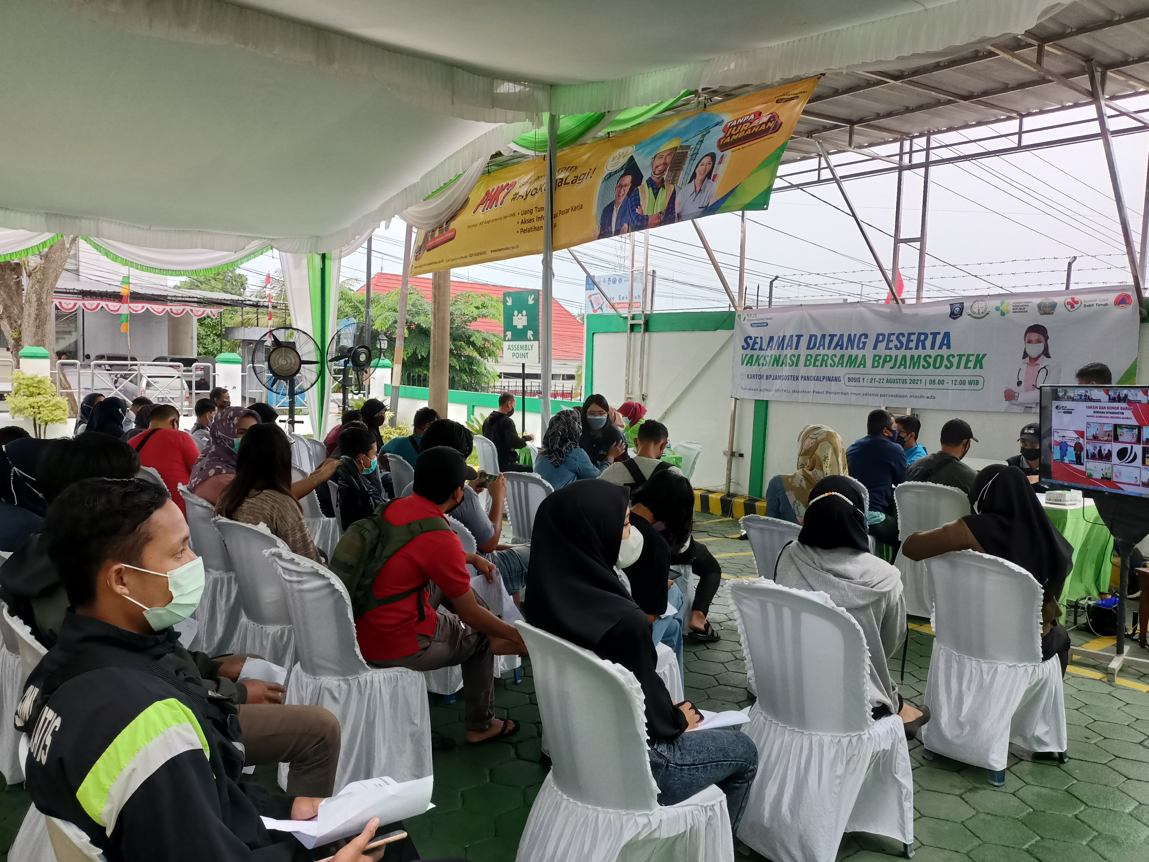 Terabasnews, Pangkalpinang – BPJS Ketenagakerjaan Cabang Pangkalpinang menggelar kegiatan vaksinasi Covid-19 terhadap para pekerja dan masyarakat umum di kota itu guna mencegah penyebaran Covid-19, Sabtu (21/8).