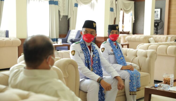 TERABASNEWS, PANGKALPINANG – Gubernur Kepulauan Bangka Belitung (Babel), Erzaldi Rosman menyambut kepulangan Pasukan Pengibar Bendera Pusaka (Paskibraka) Nasional asal Babel yang bertugas pada upacara pengibaran Sang Merah Putih di Istana Merdeka pada 17 Agustus 2021, yakni M. Agung Fachri, dan Via Tiara Ningrum di Rumah Dinas Gubernur, Sabtu (21/8/21) sore.