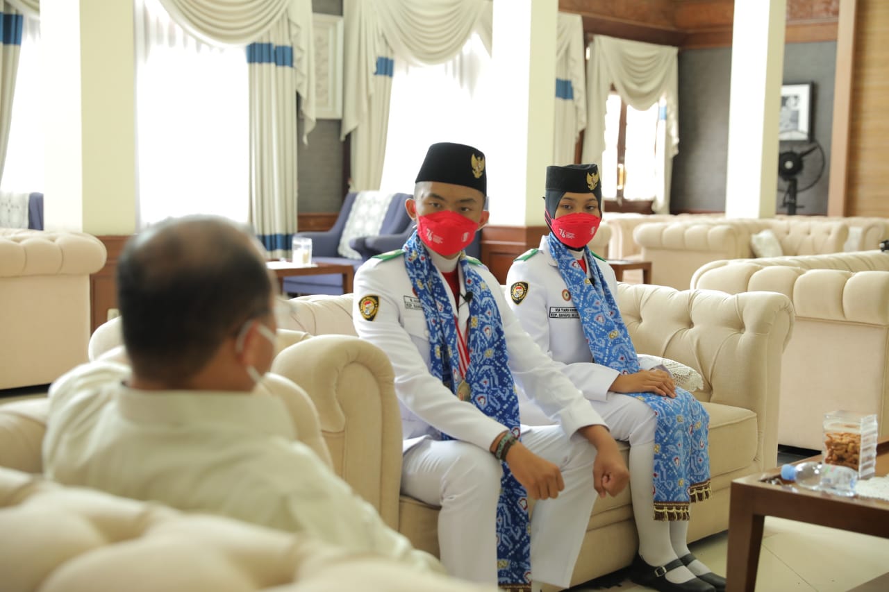 Diketahui, M. Agung mendapatkan tugas saat pengibaran bendera dan berada di tim 45 bayangan, sementara Via Tiara bertugas saat penurunan bendera pada pasukan 17. “Apa kisah menarik yang kalian dapatkan selama di sana?,” tanya gubernur kepada kedua Paskibraka itu.