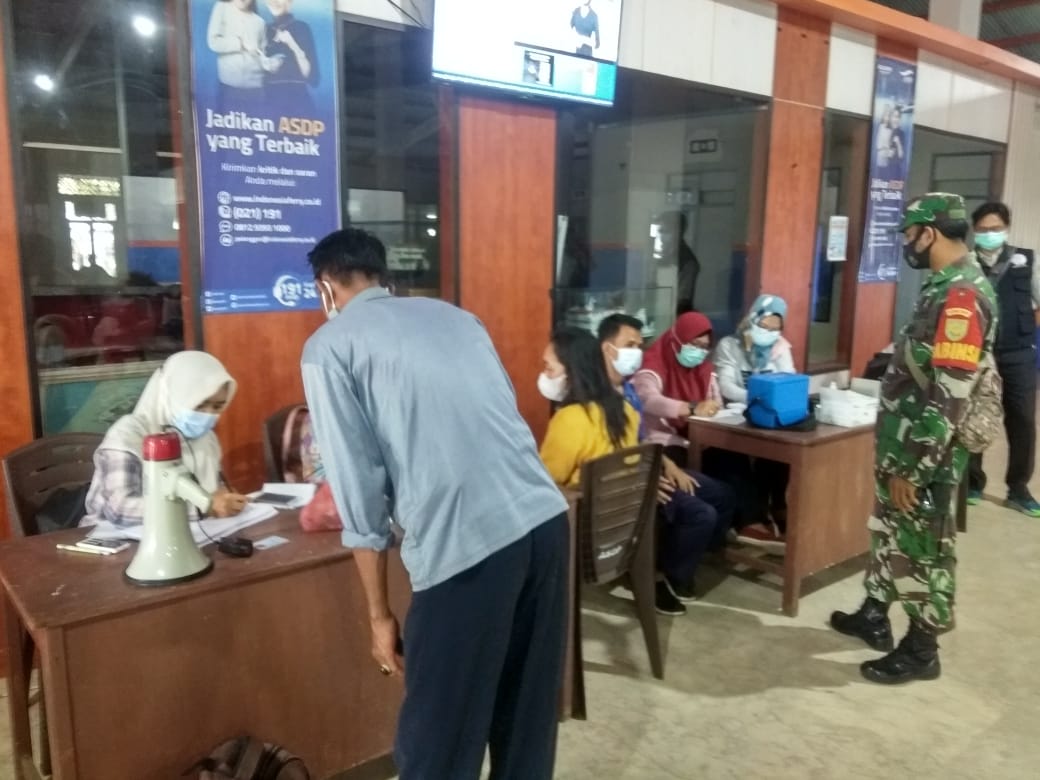 Terabasnews, Muntok – Babinsa Koramil 431-02/Muntok, serda K. Tanjung melaksanakan monitoring giat Vaksinasi tahap I yang dilaksanakan oleh Tim PKM Puskesmas Muntok bertempat di Pelabuhan Tanjung Kalian Kecamatan Muntok, adapaun jenis Vaksin yaitu Astra Zaneca, Jumat (27/08).