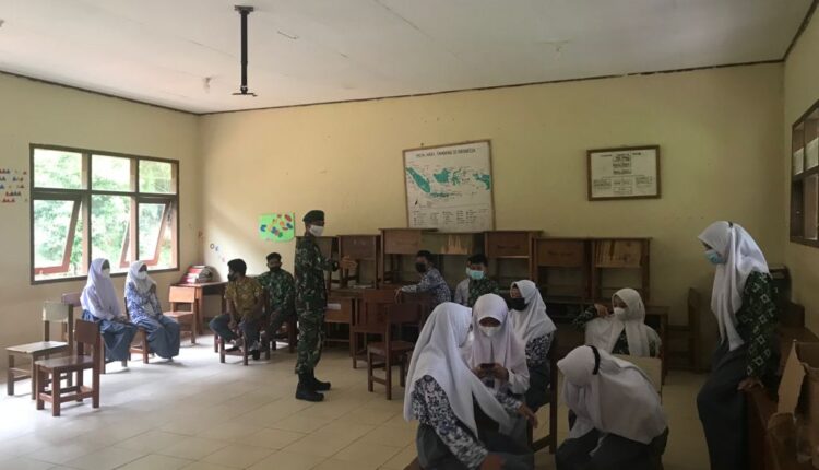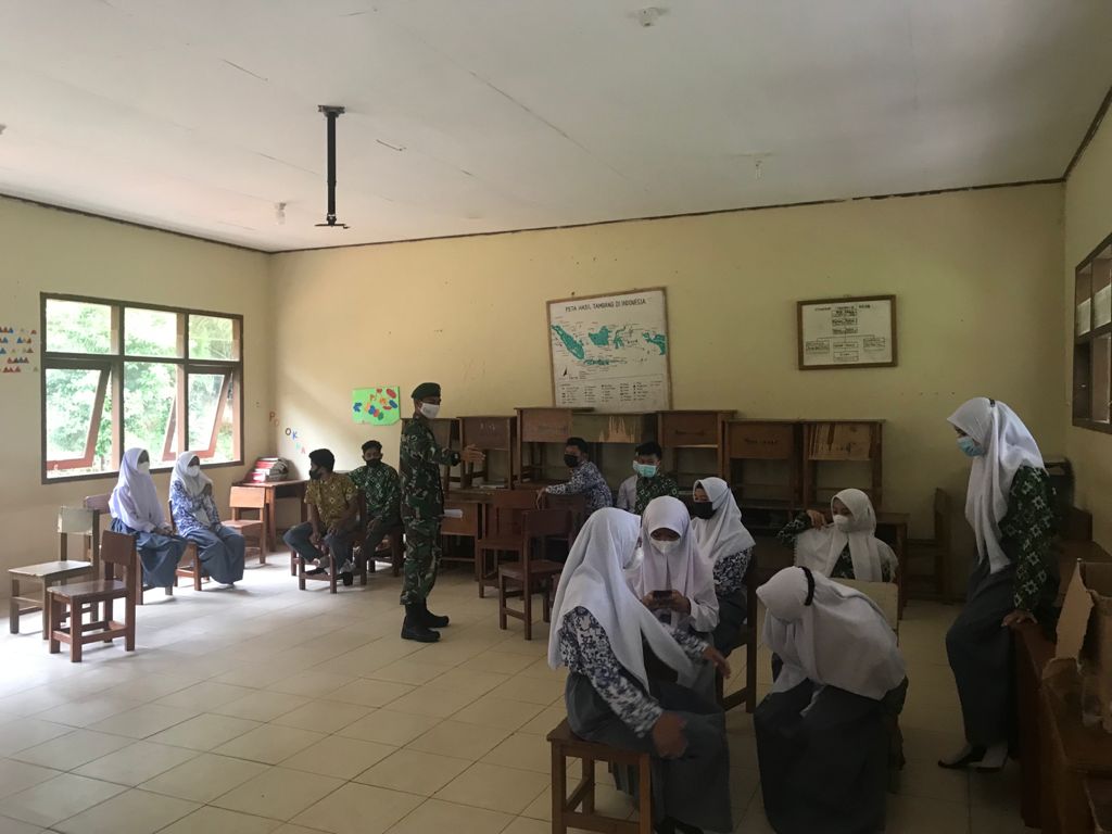 Babinsa Koramil 431-03/Kelapa Monitoring Pelaksanaan Suntik Vaksin Covid-19 Tahap I Kepada Pelajar