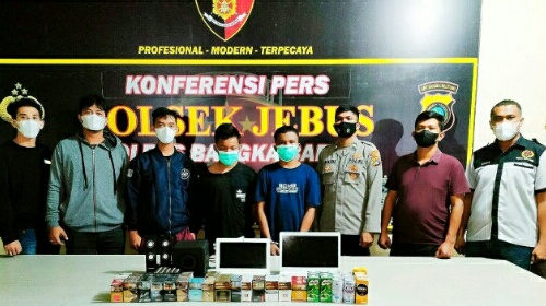 Kapolsek Jebus Kompol M.Sholeh SIK, Seizin Kapolres Bangka Barat AKBP Agus Siswanto SH.SIK.MH menjelaskan Barang bukti yang berhasil di amankan dua buah laptop, ratusan bungkus rokok, speker aktif dan beberapa jenis barang lainnya senilai 23 juta.