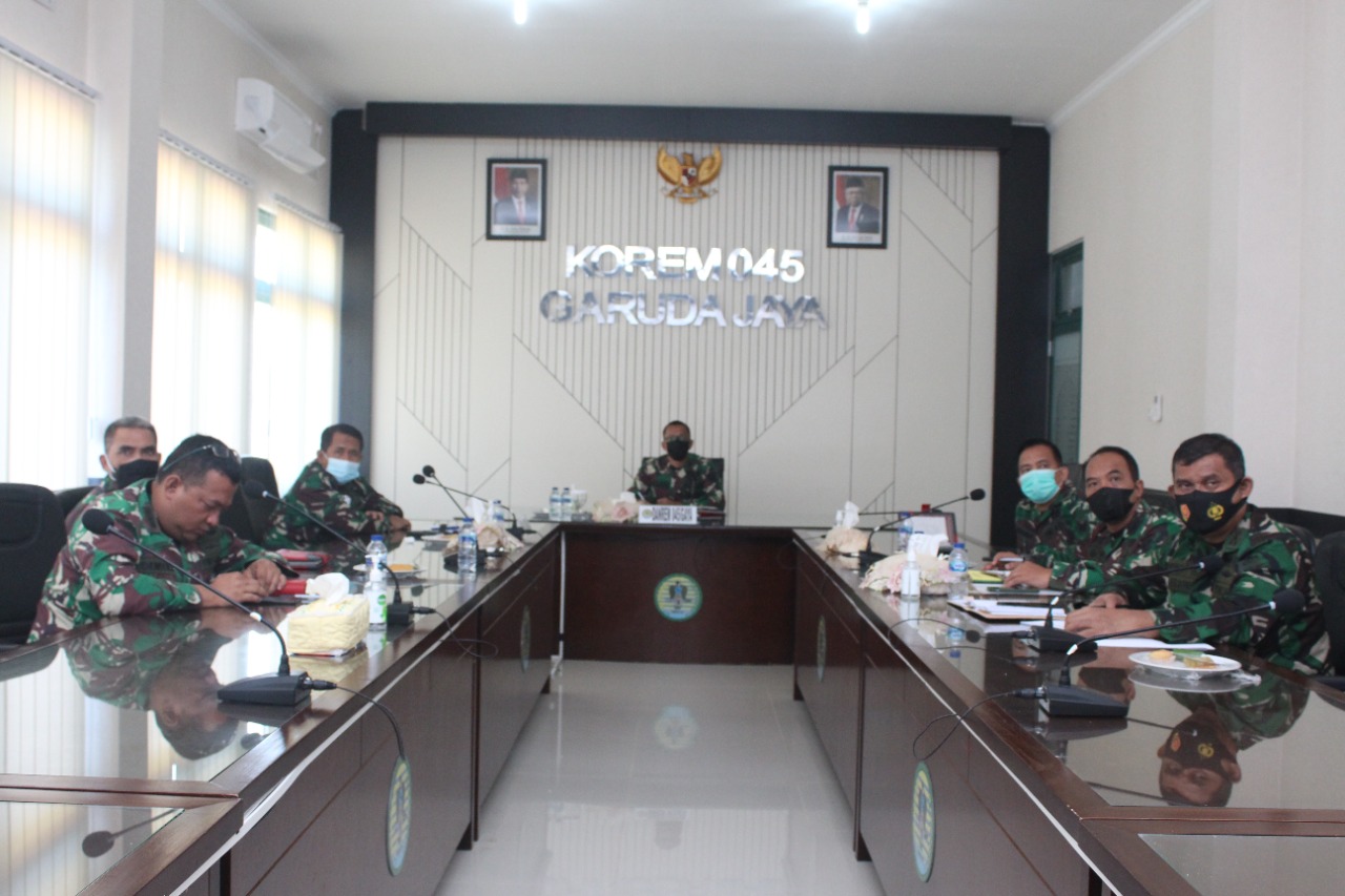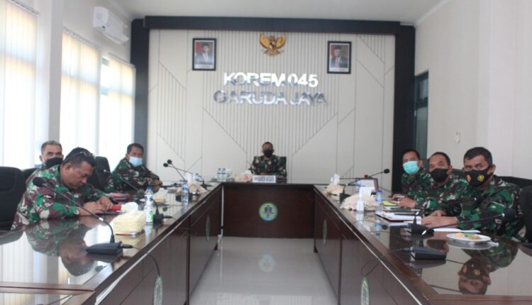 Danrem 045/Gaya Mengikuti Taklimat Akhir Tim Itjenad Dalam Rangka Pengawasan Current Audit Itjenad TA. 2021