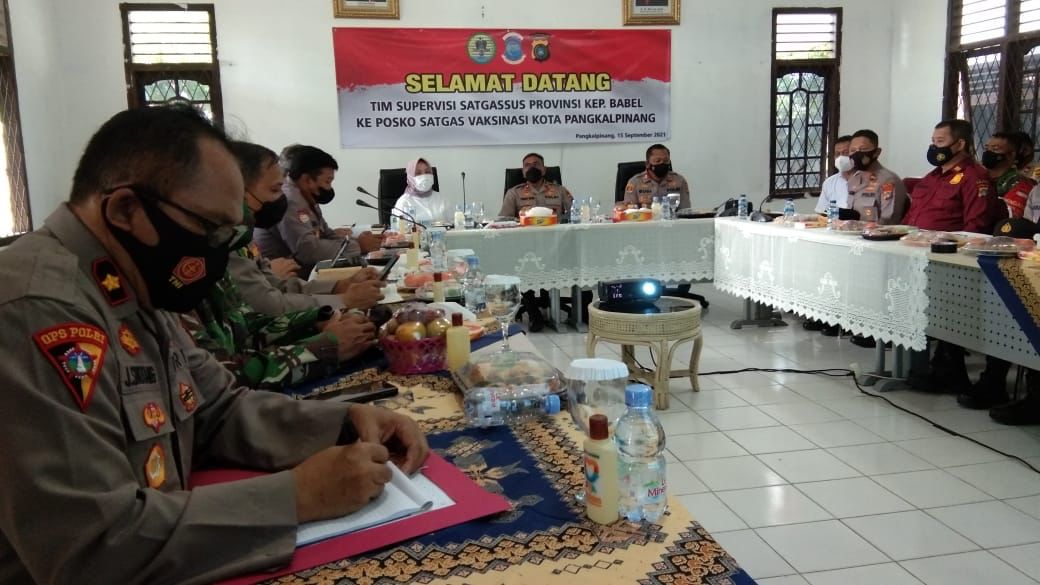 TerabasNews, PANGKALPINANG, – Sekda Kota Pangkalpinang Radmida Dawam bersama jajaran menerima Tim Supervisi Satgassus Provinsi Bangka Belitung ke posko Satgas Vaksinasi Kota Pangkalpinang, Rabu (15/9/2021).