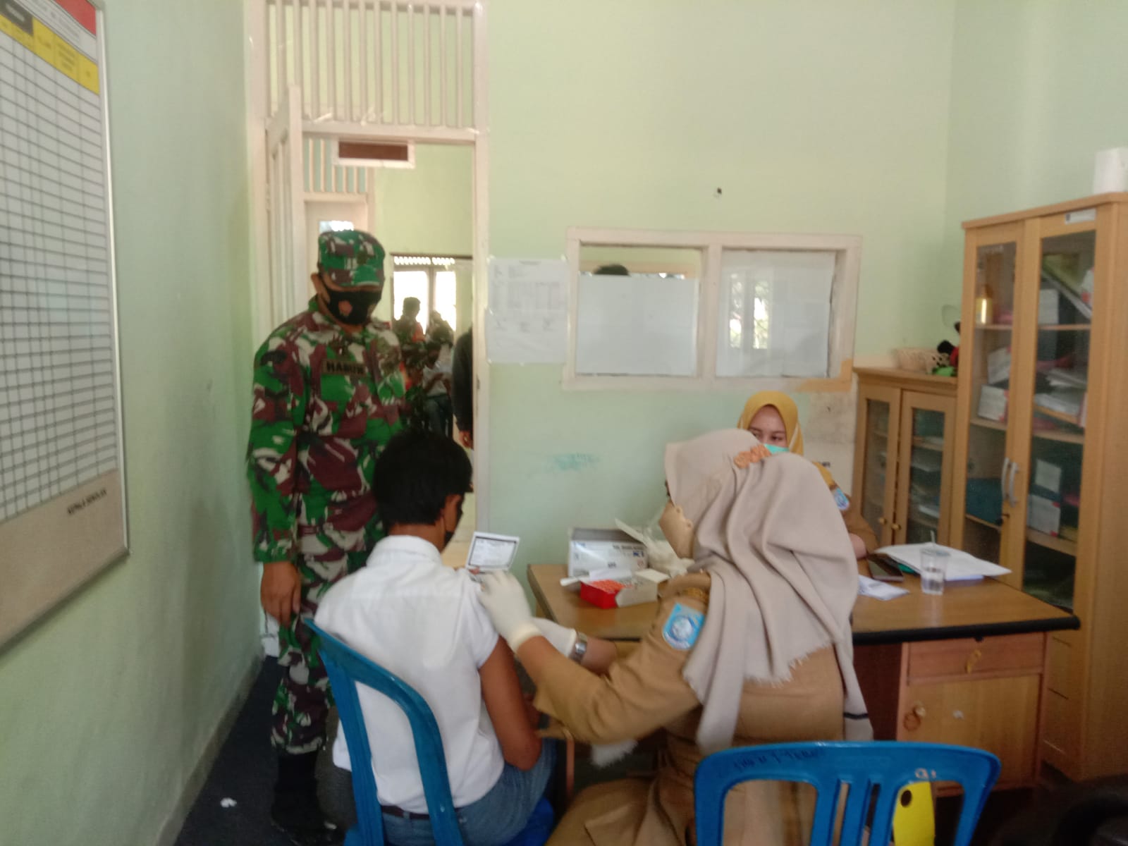Babinsa melaksanakan tugas yaitu monitor kegiatan Vaksinasi Covid-19 terhadap Siswa-Siswi dan Tim Nakes akan terus di lakukan agar mendapatkan keamanan dan kenyamanan dalam mengikuti dan mendapatkan Vaksin.” Jelasnya