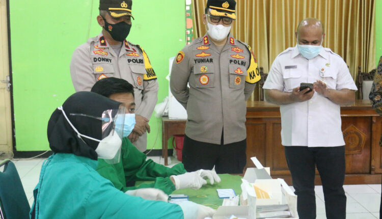 TerabasNews, KENDAL – Kapolres Kendal AKBP Yuniar Ariefianto yang peduli dengan kesehatan penerus bangsa melaksanakan kunjungan posko sekolah sehat yang berada di MAN Kendal. Selain itu Yuniar juga monitoring swab anti gen yang dilaksanakan di MAN Kendal sebagai persiapan PTM.