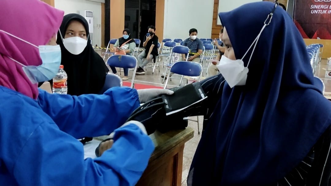 “Ada kurang lebih 40 orang relawan mahasiswa yang telah dilatih sebelumnya dan memenuhi syarat untuk turut serta membantu vaksinasi. Termasuk kita terjunkan anggota membantu input data dan registrasi sehingga proses vaksinasi menjadi lebih cepat, efektif dan efisien.” Imbuhnya.