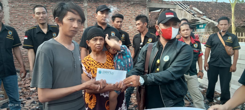 Kepedulian Ormas Lindu Aji DPC Kabupaten Kendal dalam membantu korban musibah kebakaran.