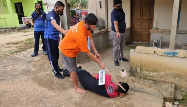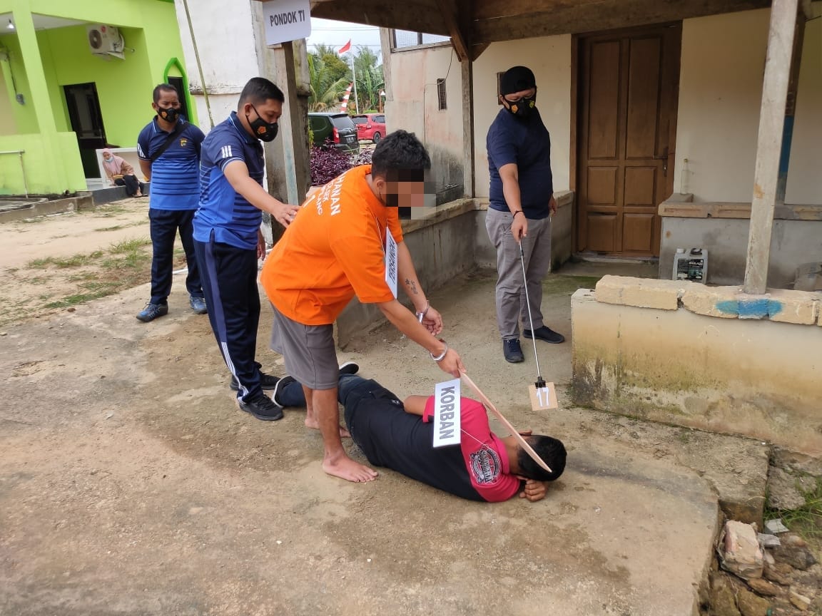 Polsek Tempilang Rekonstruksi Kasus Pembunuhan sebayak 24 Adegan