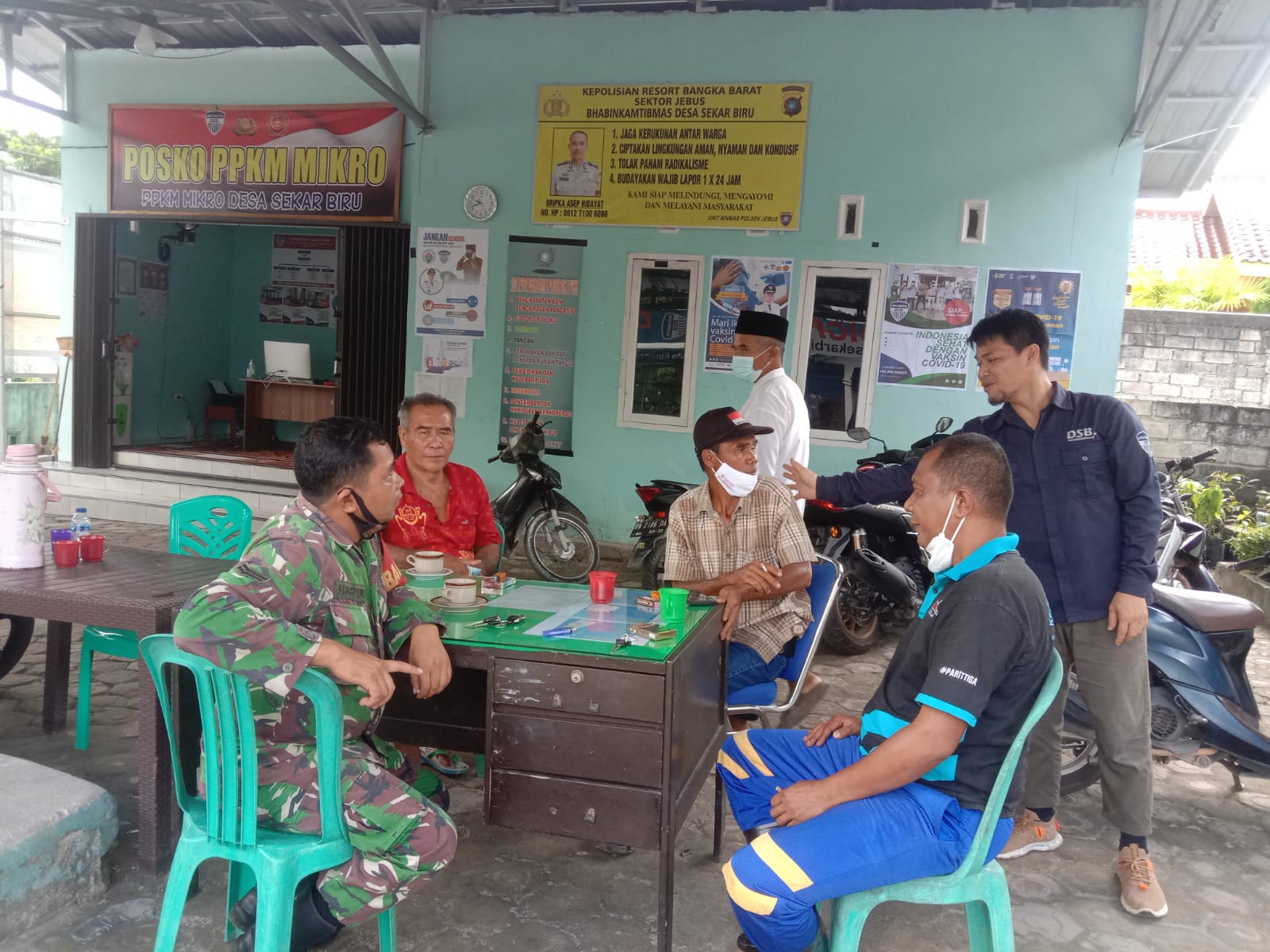 Babinsa Koramil 431-01/Jebus, Sertu Harun pada melaksanakan kegiatan komsos dengan Kadus Sekarbiru Bapak Yayat bertempat di posko PPKM Desa Sekar Biru, Komsos tersebut membicarakan masalah pelaksanaan PPKM Covid-19 khususnya pelaksanaan PPKM di Desa Sekar Biru karena sampai dengan saat ini Kabupaten Bangka Barat masih tertahan PPKM di level 3,oleh sebab itu Babinsa menyampaikan ke Kadus agar selalu menghimbau Masyarakat Dusun Sekarbiru untuk selalu taat pada Prokes Covid-19 sehingga Kabupaten Bangka Barat bisa turun level dua atau level satu, bahkan ke level normal sehingga Warga dapat beraktifitas sepeti sediakala. Minggu,(26/09/21)