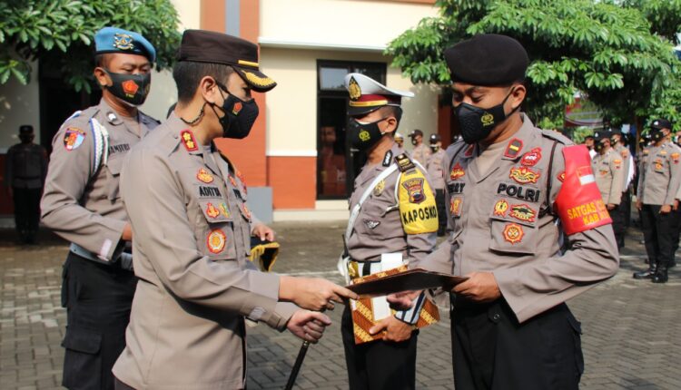 Kapolres Kudus AKBP Aditya Surya Dharma beri penghargaan kepada personilnya.