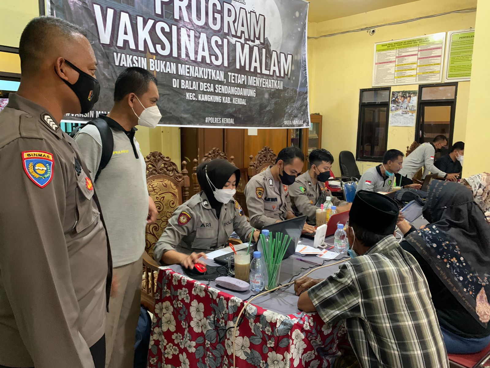 terabasnews.com.KENDAL – Vaksinasi Malam kembali digelar Polres Kendal di Balai Desa Sendangdawung Kecamatan Kangkung, Rabu malam (29/9/2021).