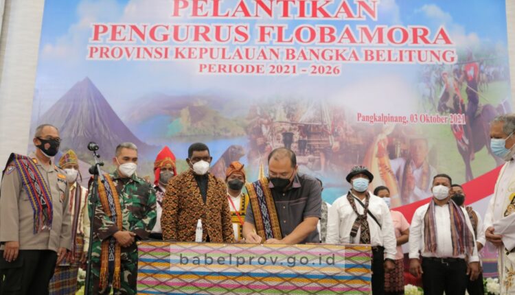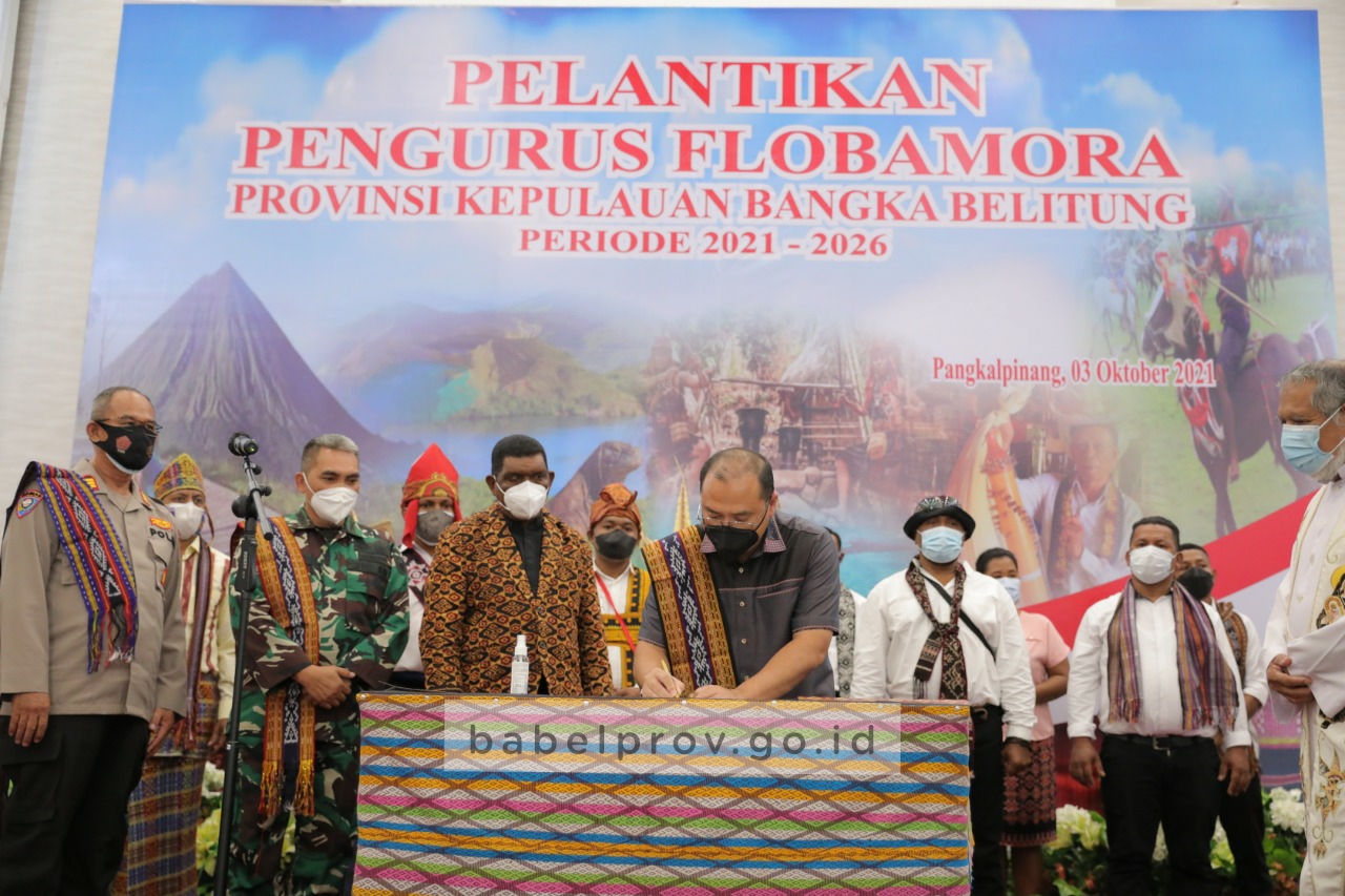Akhir pekan ini, Gubernur Erzaldi Rosman melantik jajaran kepengurusan Flobamora Provinsi Kepulauan Bangka Belitung, disertai peresmian logo Flobamora yang berlokasi di Gale-gale Ballroom, Minggu (3/10/2021).